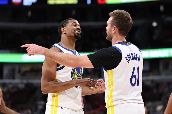 本场比赛中,勇士的先发控卫帕特-斯潘塞(Pat Spencer)的表现相当不错,展现出了超强的个人能力。斯潘塞全场出场27分09秒,投篮10中6,得到了12分5篮板6助攻1抢断的数据,还有4次失误和1次犯规,正负值也是达到了+30。斯潘塞在进攻端展现出了不俗的突破能力和终结能力,他也是得到了不少分数,起到了应该起到的作用。斯潘塞在传球和组织进攻方面的表现同样是值得肯定的,同样是能够给球队提供不少的支持的。斯潘塞在防守端的表现也是值得肯定的,同样发挥出了自己的特点。总体来看,斯潘塞在场上的作用相当突出,他在场上时球队的局面也是一片大好。虽然听起来有些奇怪,但是斯潘塞在本场比赛中确实是很好地扮演了后场核心的角色并且为球队的这场大胜做出了不小的贡献。